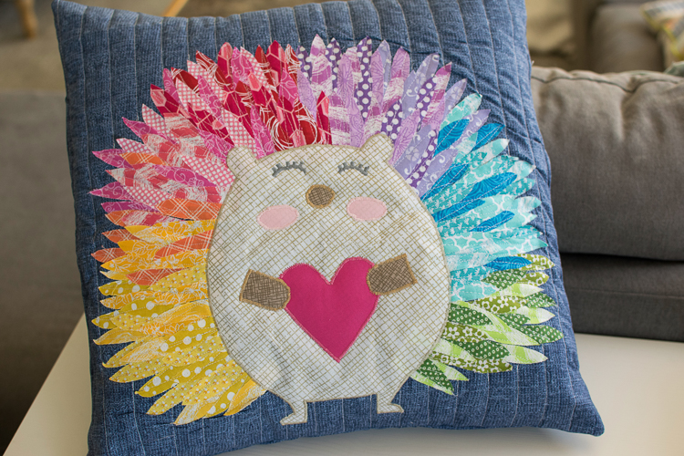 Meet Elsie. How adorable is this appliquéd hedgehog? I made this sweet pillow as a gift for my sister-in-law who loves all things adorable and colorful. The pattern is Elsie Avenue by Sassafras Lane Designs.
