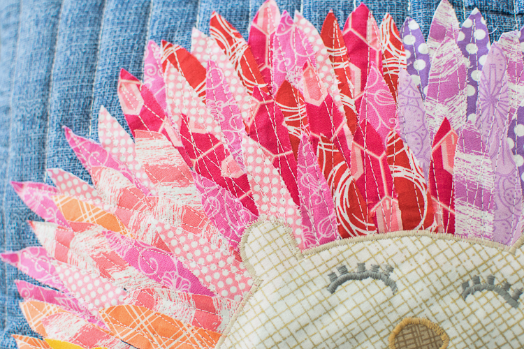 The hedgehog was stitched down using a zig zag stitch and the quills with a straight line stitch. The quills will fray a bit at the edges which I think adds to the charm.