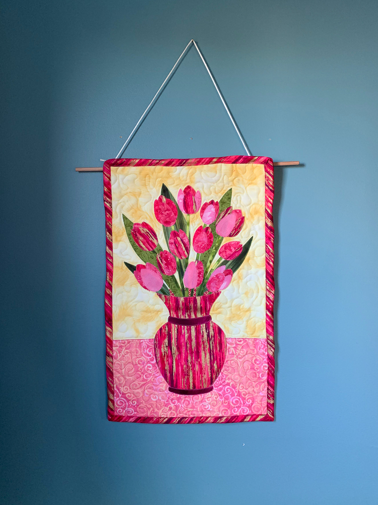 This gorgeous pattern by Shabby Fabrics was so much fun to make! It is all raw edge appliqué and finished with free motion quilting. I love how whimsical and joyful it is!