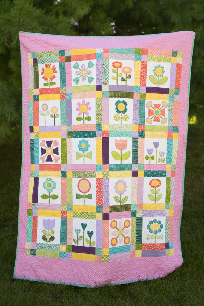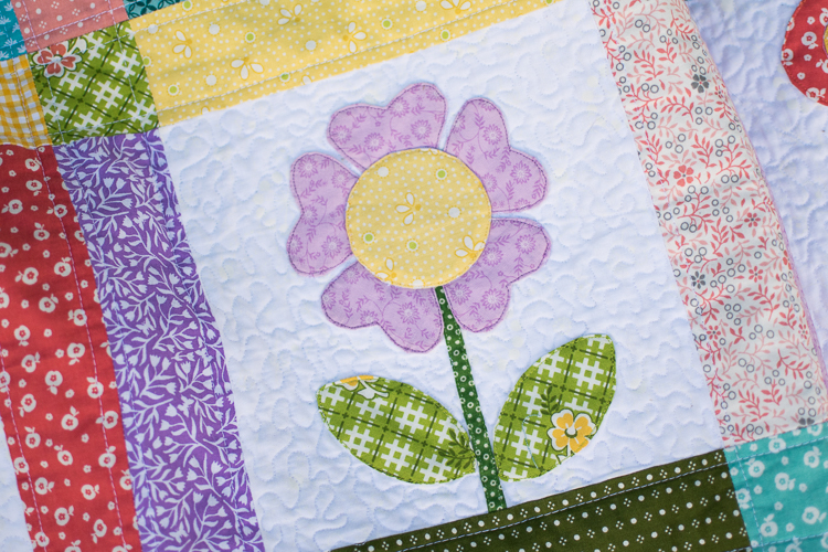 This gorgeous pattern by Shabby Fabrics was so much fun to make! It is all raw edge appliqué and finished with free motion quilting. I love how whimsical and joyful it is!